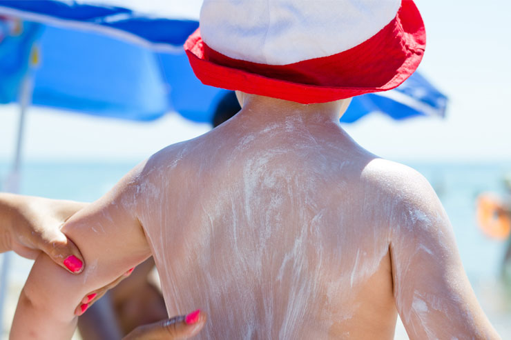 Apply a broad-spectrum, water-resistant sunscreen ideally SPF50 to all exposed skin, and reapply every two hours or after swimming or sweating.